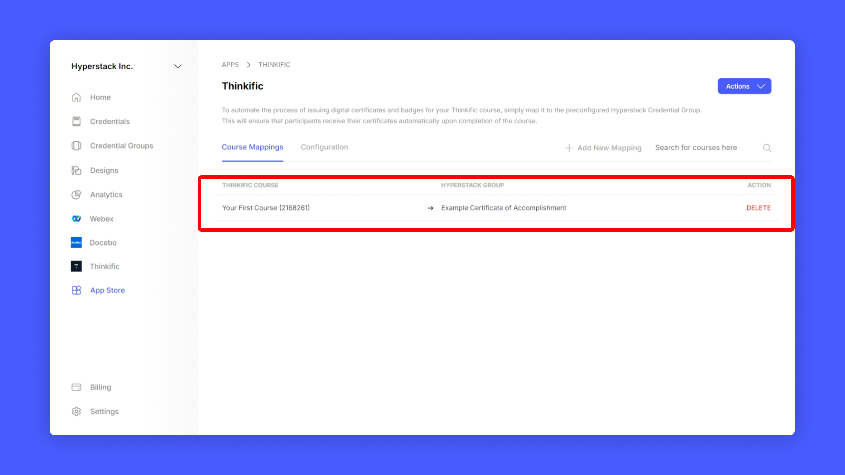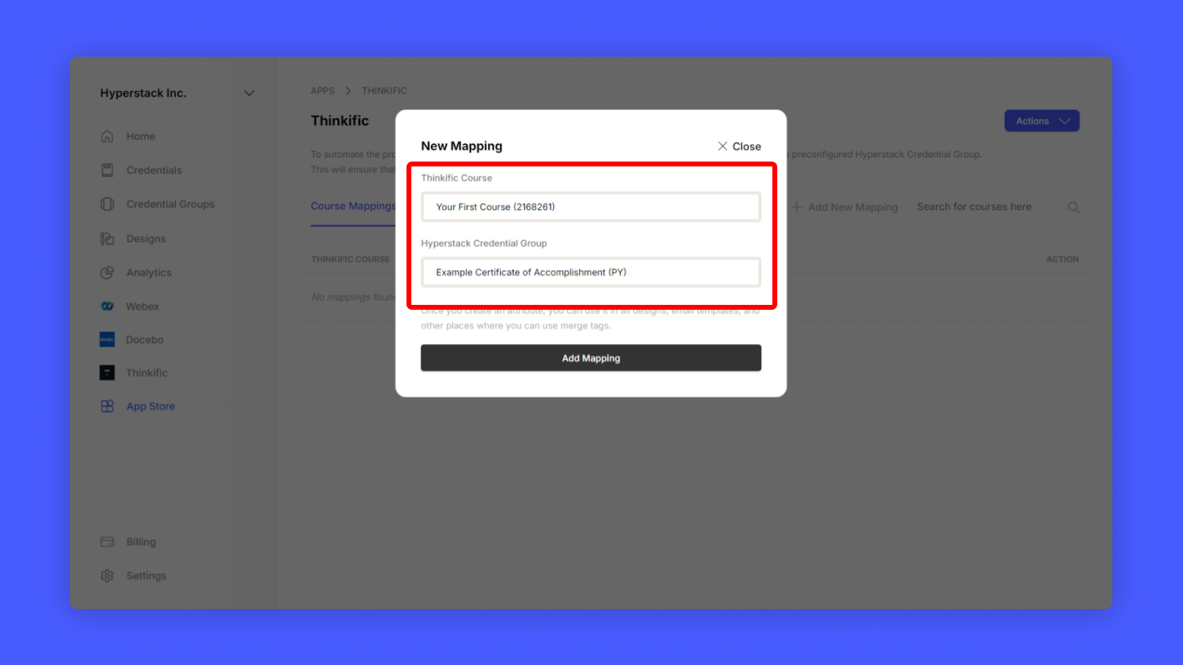 Step 5: Click Add New Mapping to map your Thinkific course with Hyperstack.