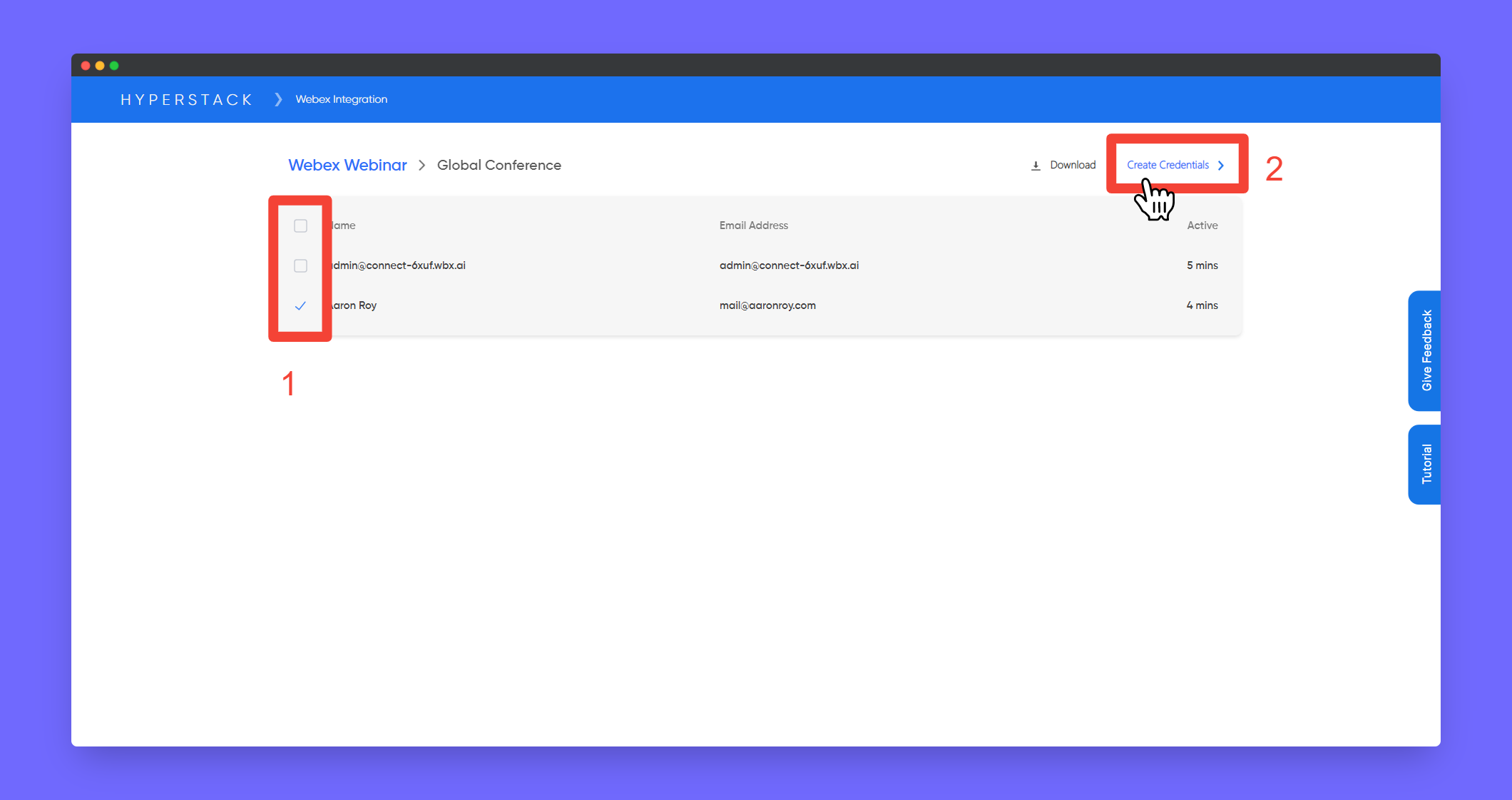 Step 7: Select the attendees and click Create Credentials to start issuing certificates to the selected attendees.