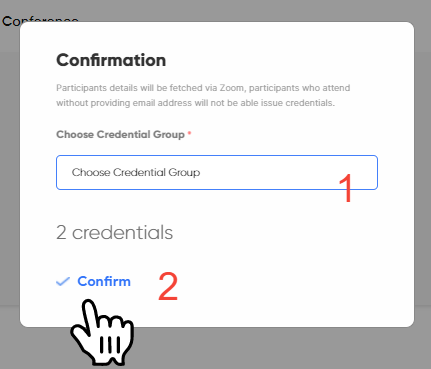 Step 8: A confirmation popup will appear, Select the Credential Group you want to issue in and Click Confirm to publish the certificates.