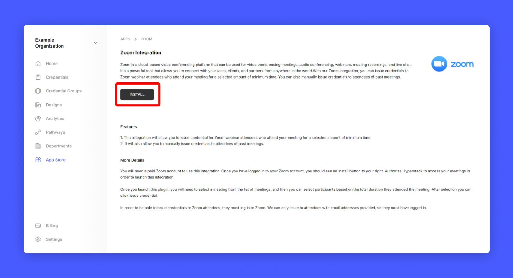 Step 1: Go to App Store and open Zoom Integration in your Issuer account