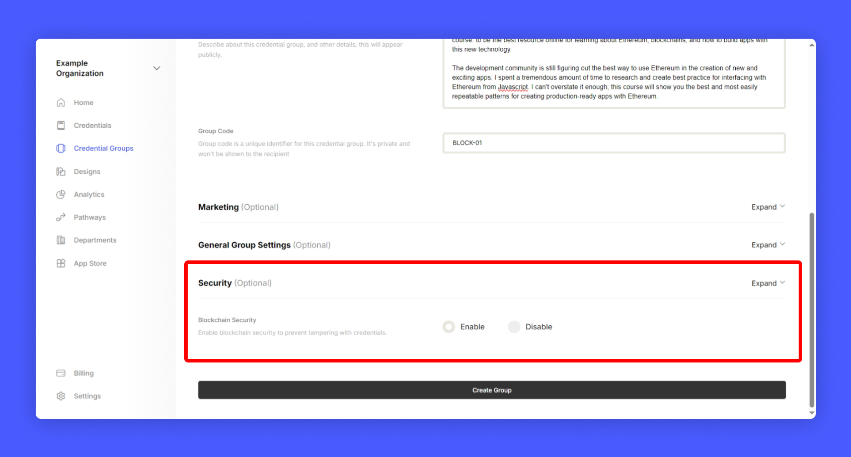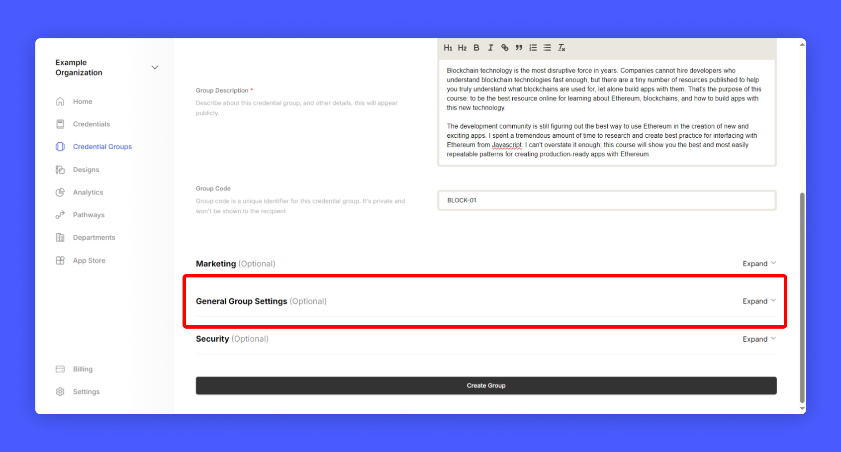 You have full control over how your credential should behave. Here are some of the advanced features you can configure for your credential group.