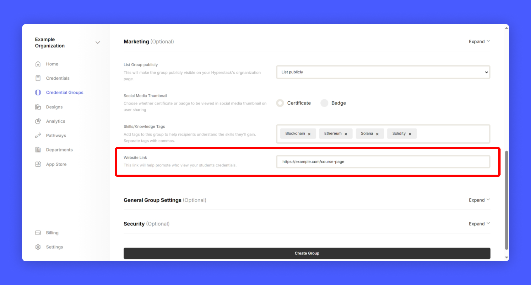 This is one the most important feature in Hyperstack. This will help your organization generate organic leads from the credential you issue. This CTA will appear under every credential you issue to your students.