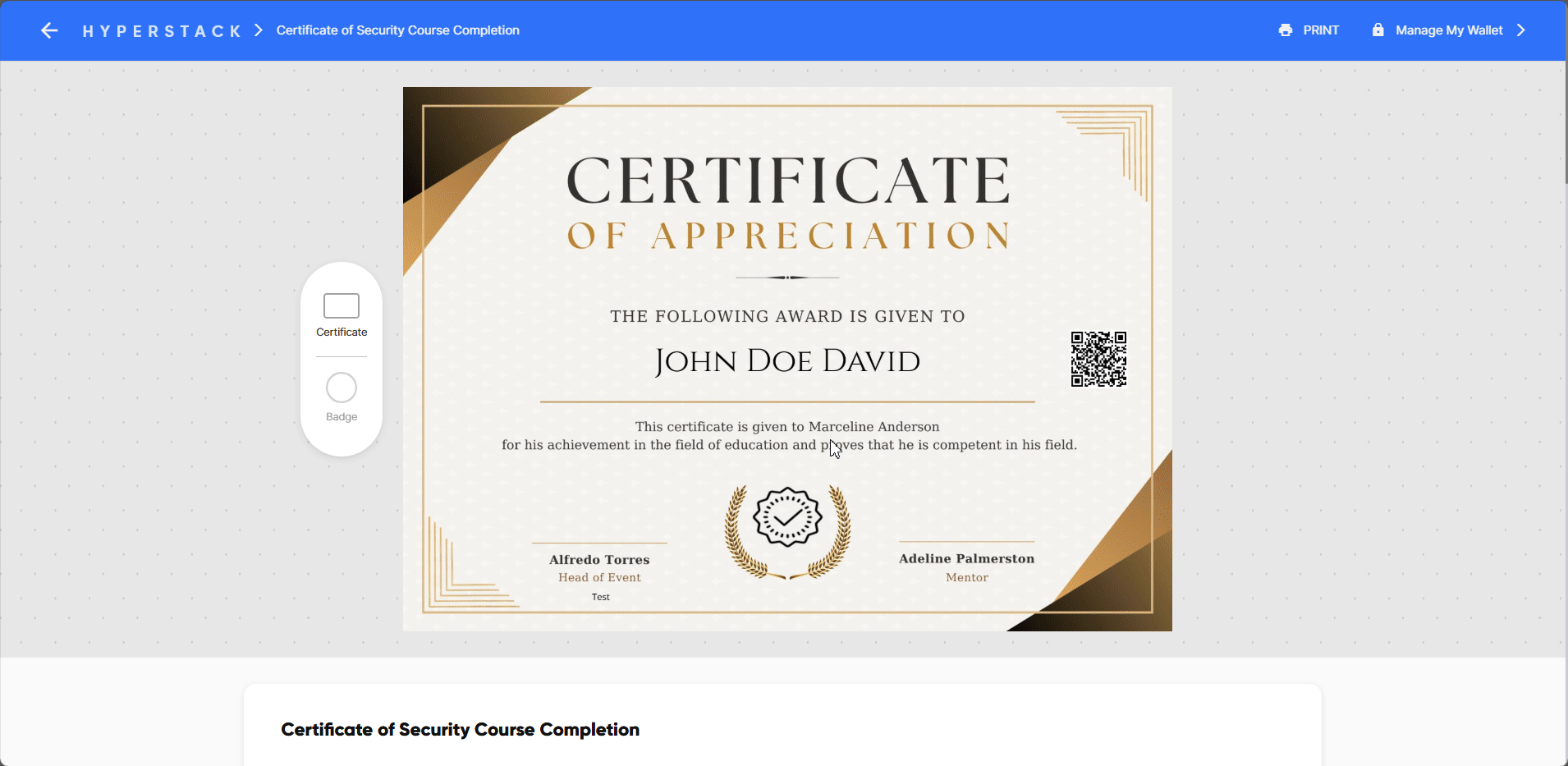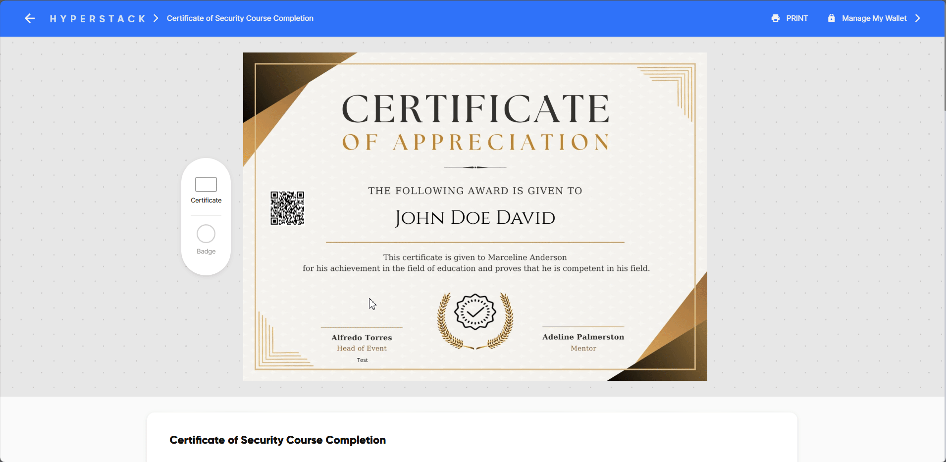Note: Email address cannot be updated once the credential is issued. If you need to update the email address, you need to revoke the credential and re-issue it with the correct email address.