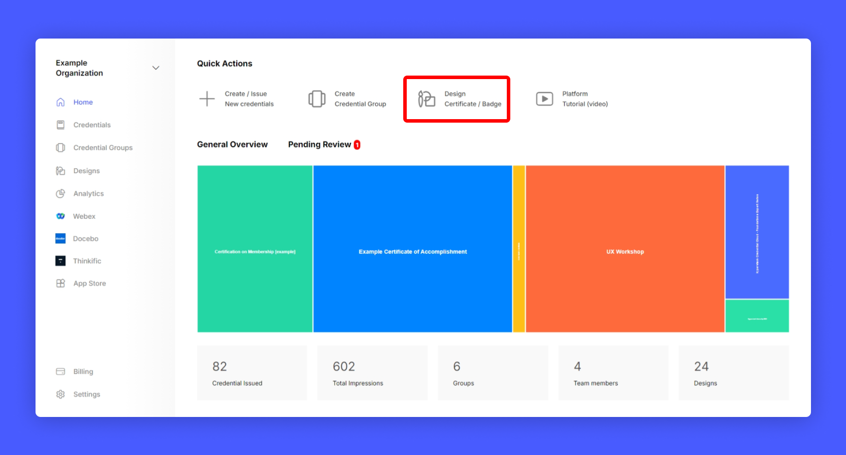 Step 1: Click Design Certificate/Badge from your issuer account home page and select Certificate.