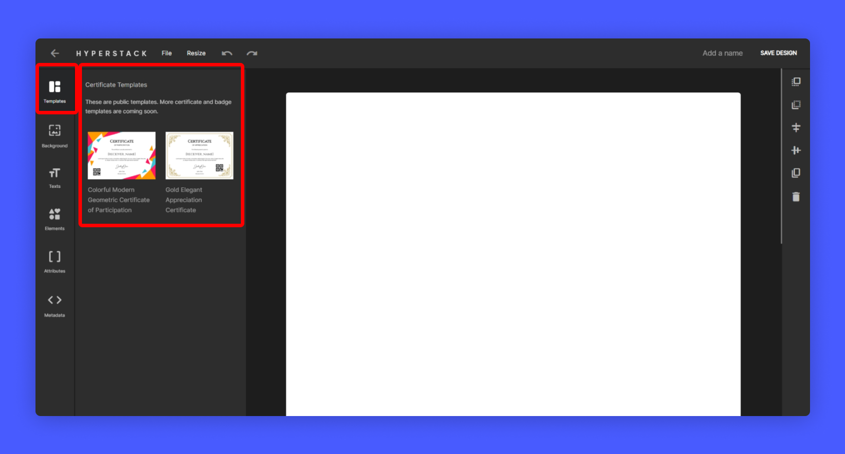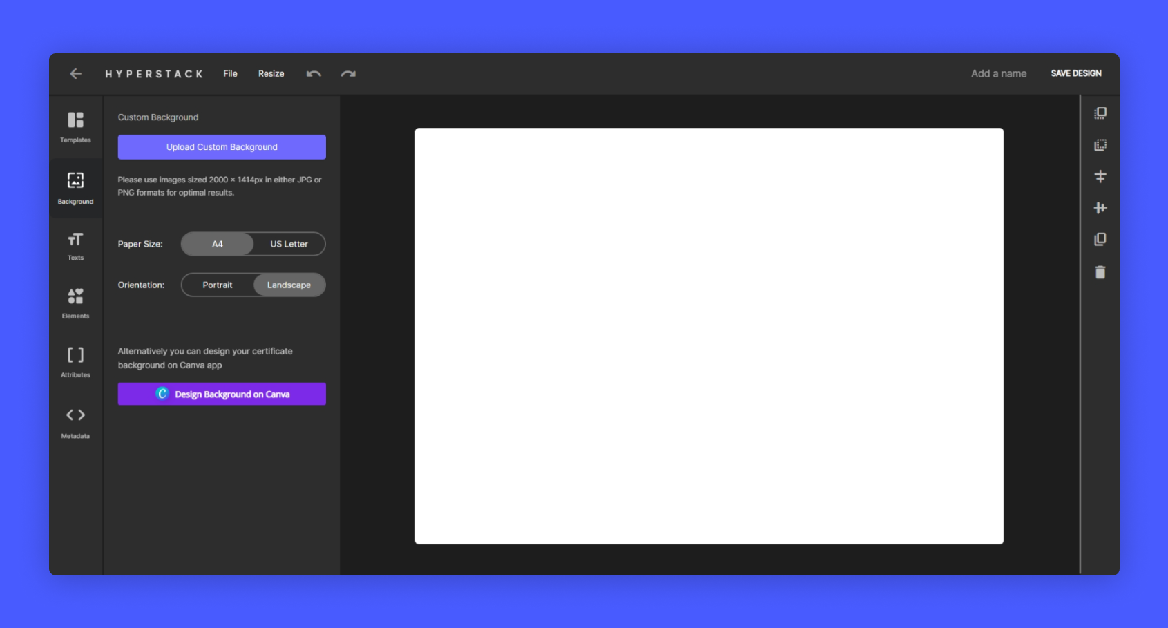 The Credential Cloud platform has it's own design studio for designing the dynamic certificate. The design studio also has an native integration with canva so that the users can take advantage of the templates, benifits and design ease of canva.