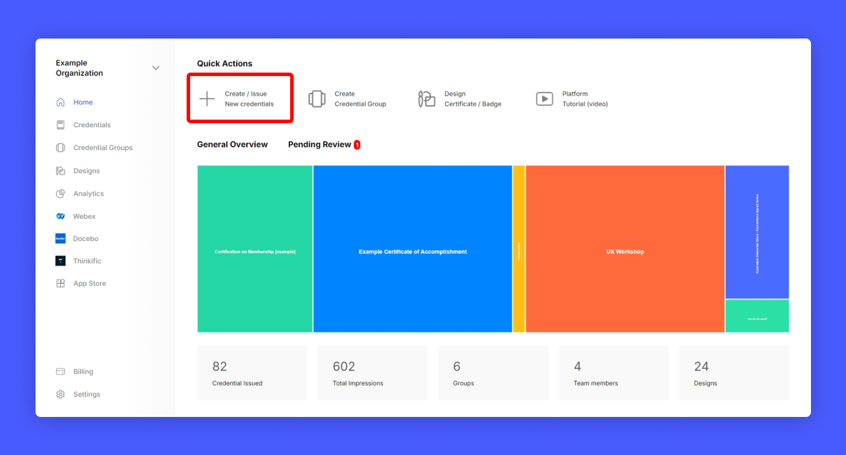Step 1: Click Create/issue New Credential from your issuer account home page