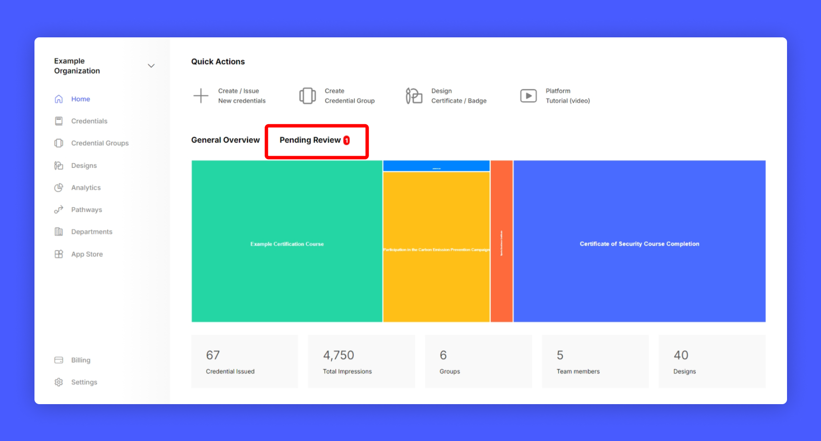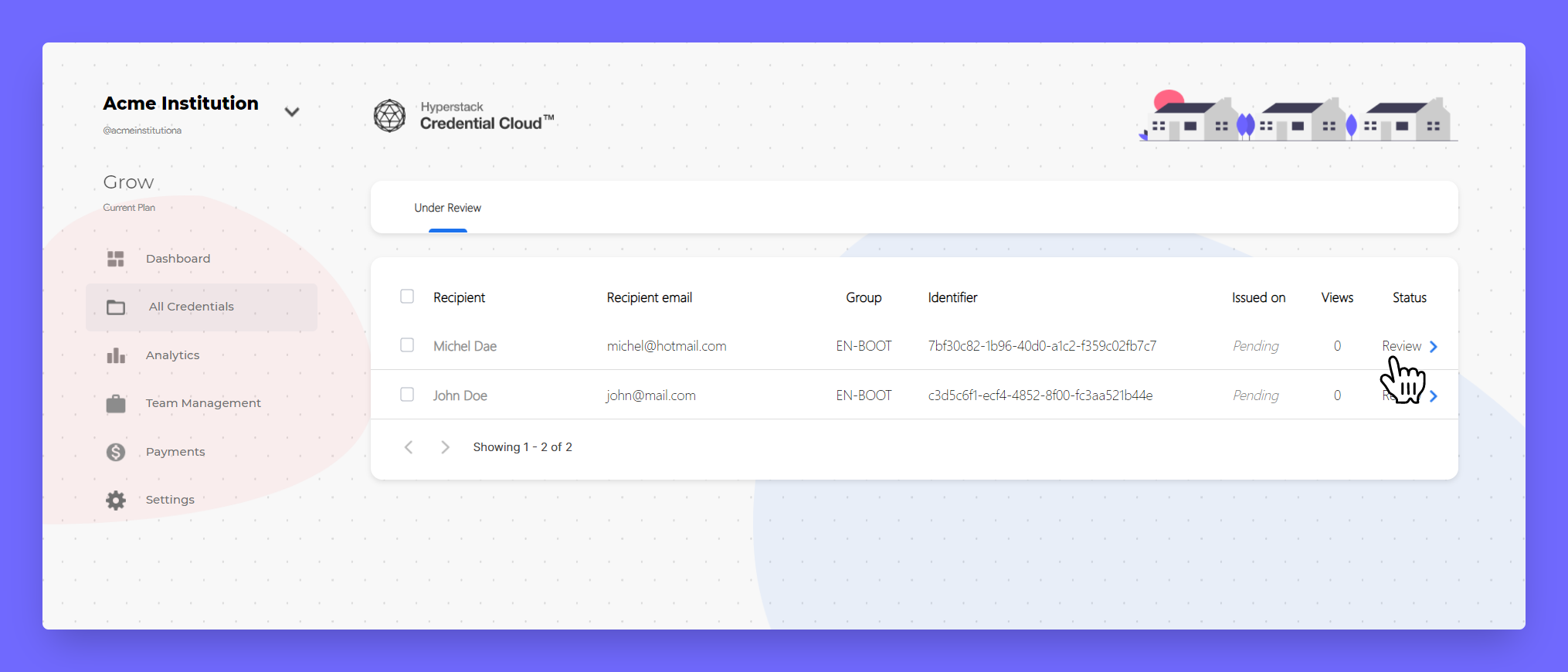 You will be taken to Under Review page, there you will find credentials that are ready for review.