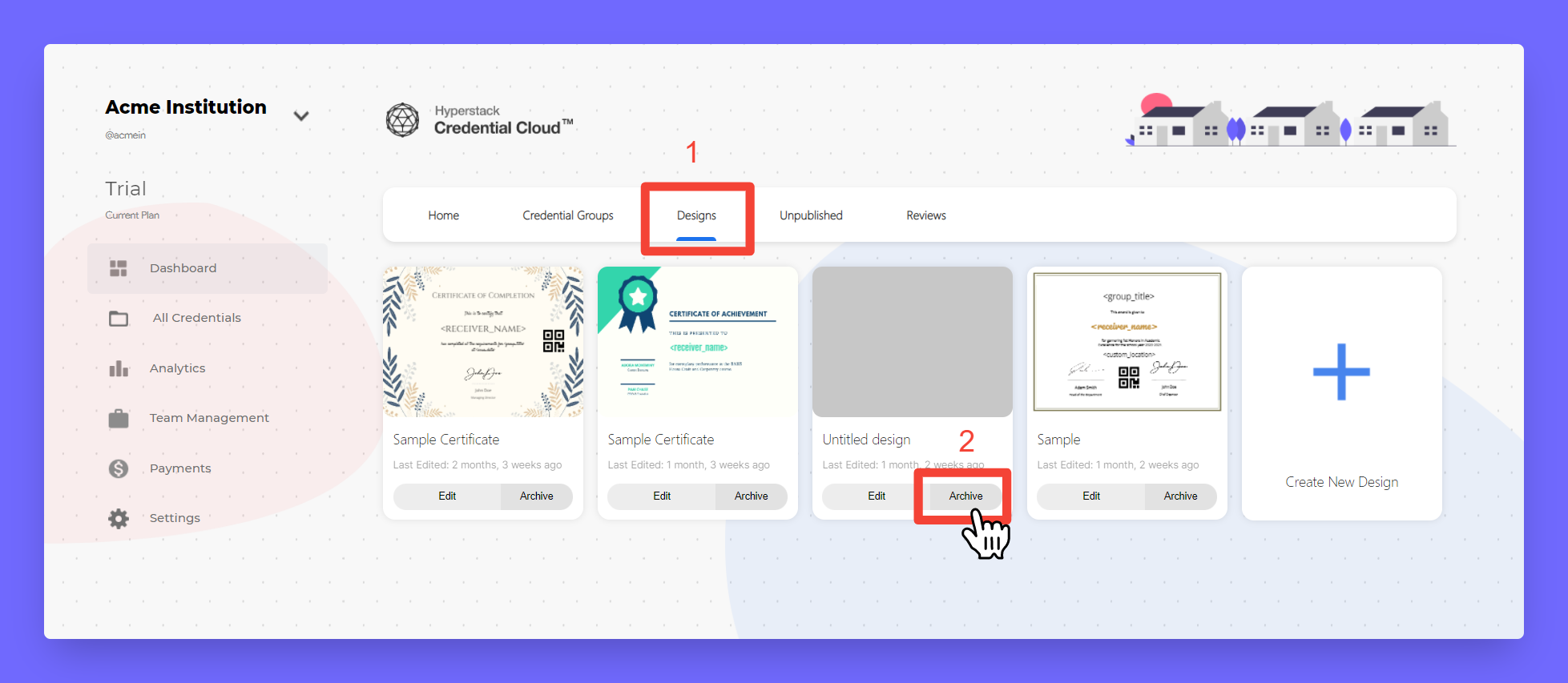 Step 2: Now you will see your designs, click Archive to archive the design and click confirm.