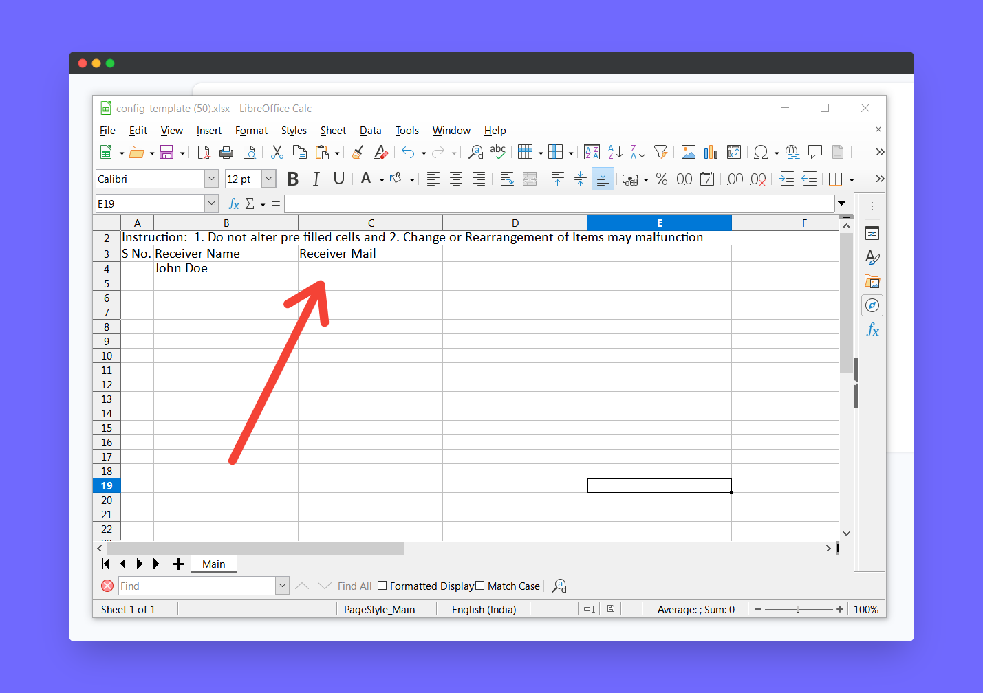 Step 4: Open the downloaded template and fill every column except the receiver mail