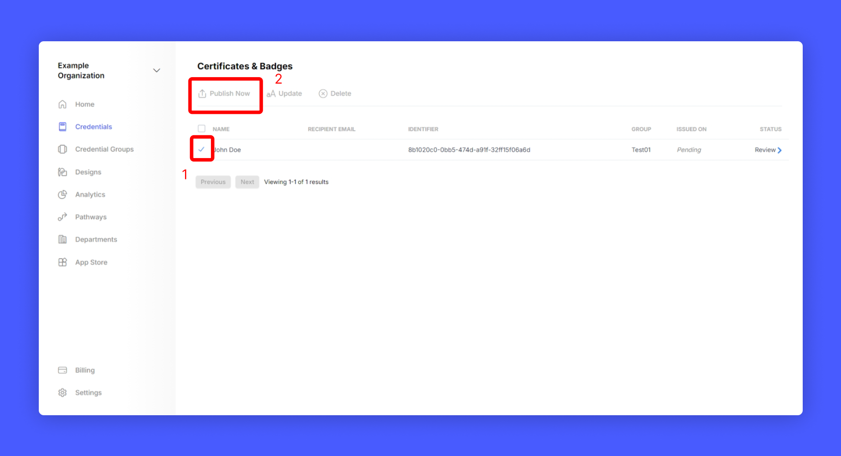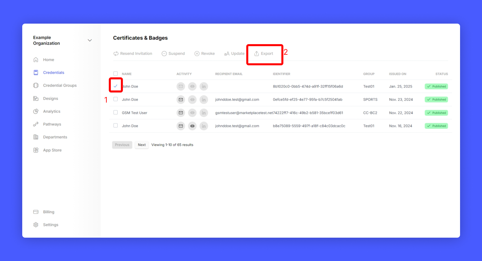 You can issue certificates and badges without a recipient's email address, and they can claim their credential using the provided claimable URL